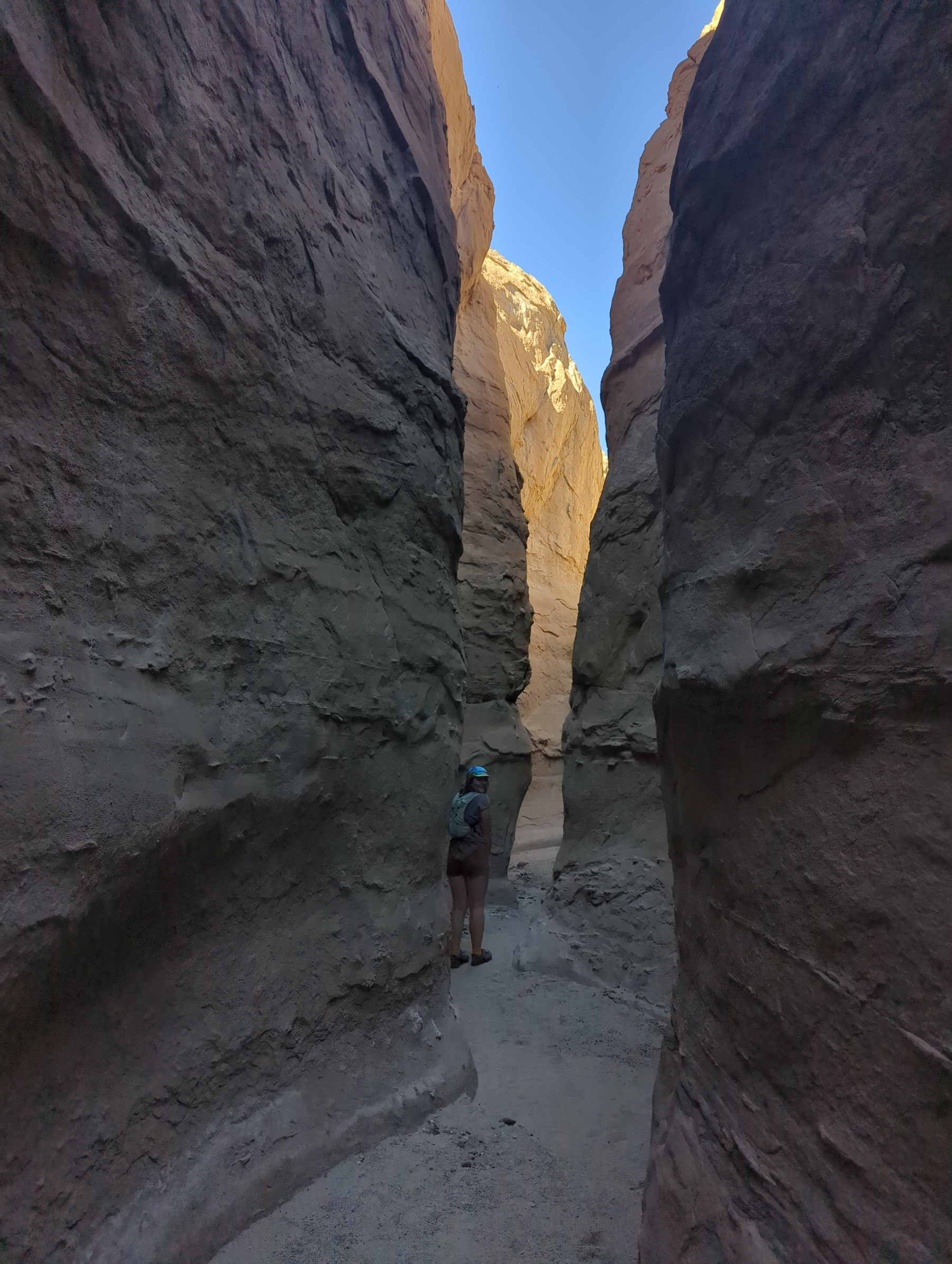 The morning began in the cool, dewy air of Blair Valley before we descended back toward the lower elevations of Borrego Springs. We stopped by the park’s award-winning visitor center, taking in the fossil museum and desert exhibits. From there, we doubled back to Arroyo Salado to explore the slot canyon and old calcite mine the ranger had mentioned yesterday. While the mine itself was a bit of a dud, the scramble through the deepening canyon was great, and the ground was littered with pretty calcite shards. We jogged back down the wash, hopping between patches of shade to escape the midday sun.