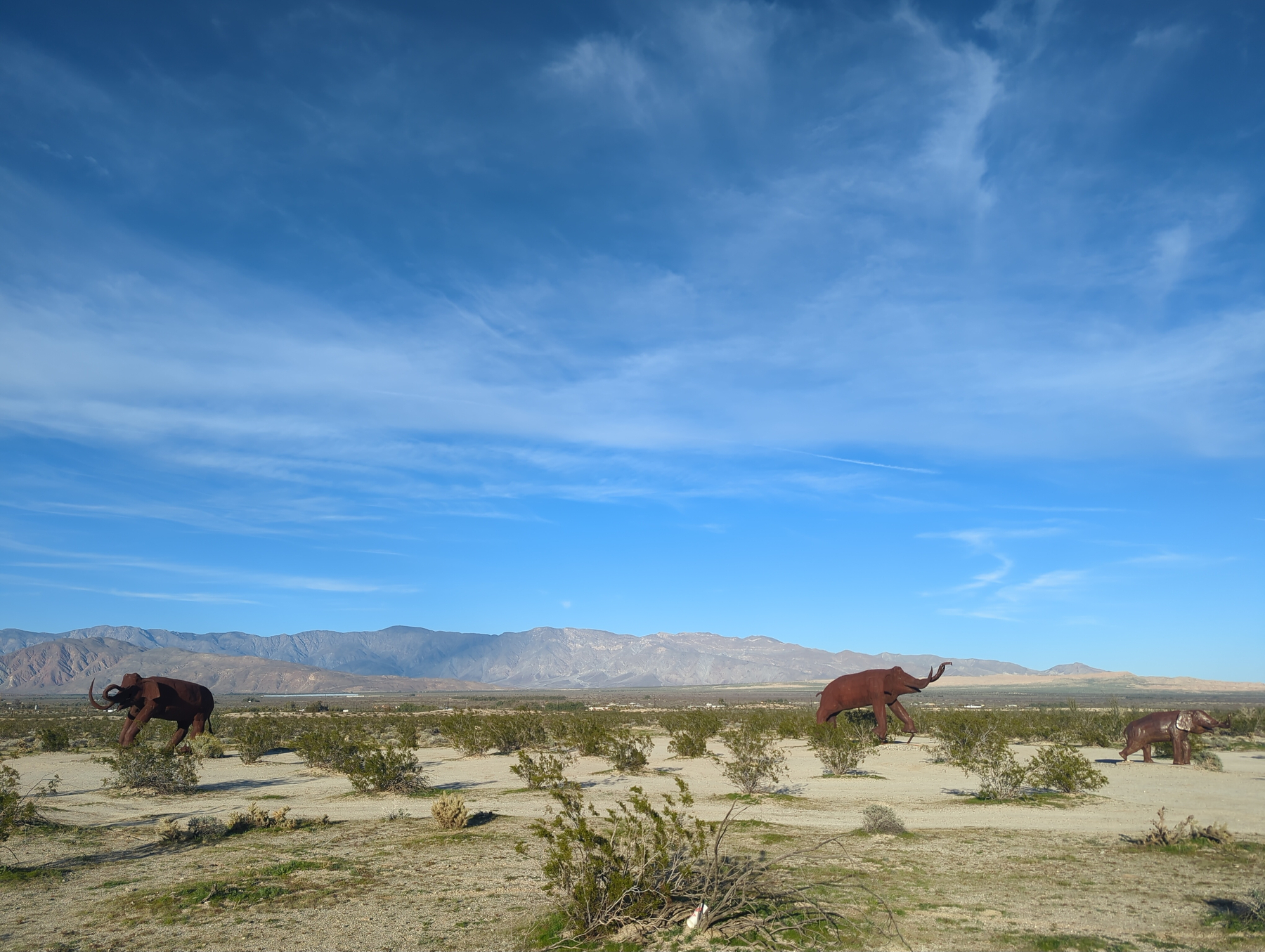 By mid-afternoon, the road was calling Monika home. Between her recent marathon, the cold spells, and five days of car-camping, she was ready to see Josh, her cat, and her shower again. We said our goodbyes, and Rose and I headed back out, passing the town’s famous massive iron sculptures. I was struck by the “lazy beach town” vibe of the area; with the palm trees and the scent of salt in the air from the nearby Salton Sea, it felt just like laid back town on the coast.