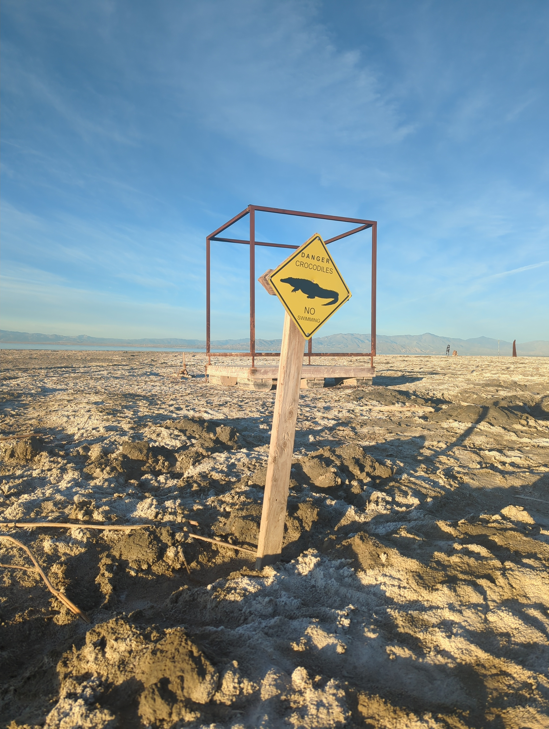 Jeff invited us to the weekly karaoke night, but the town had a definite methy undertone, so we decided to head back to the highway before dark and push on to Bombay Beach. Once a thriving resort town, it’s now a surreal semi-ghost town where original residents live alongside artists building installations on the desolate, salty shore.