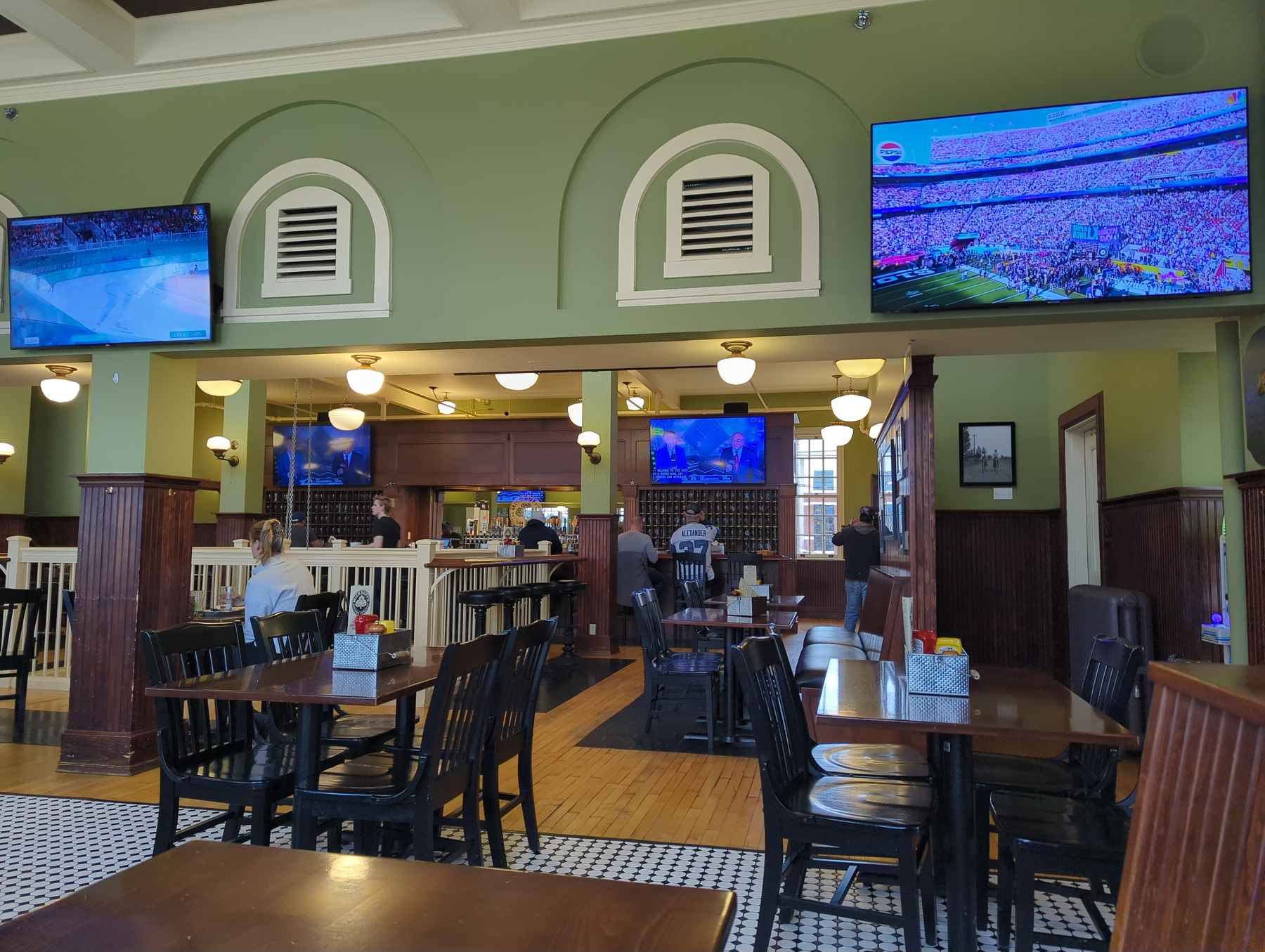 Being Super Bowl Sunday (with the Olympics on too), we headed back into Sandpoint to a cool brewery housed in an old government building. It was the perfect spot to warm up, grab some dinner, and catch the game with Josh and Monika.