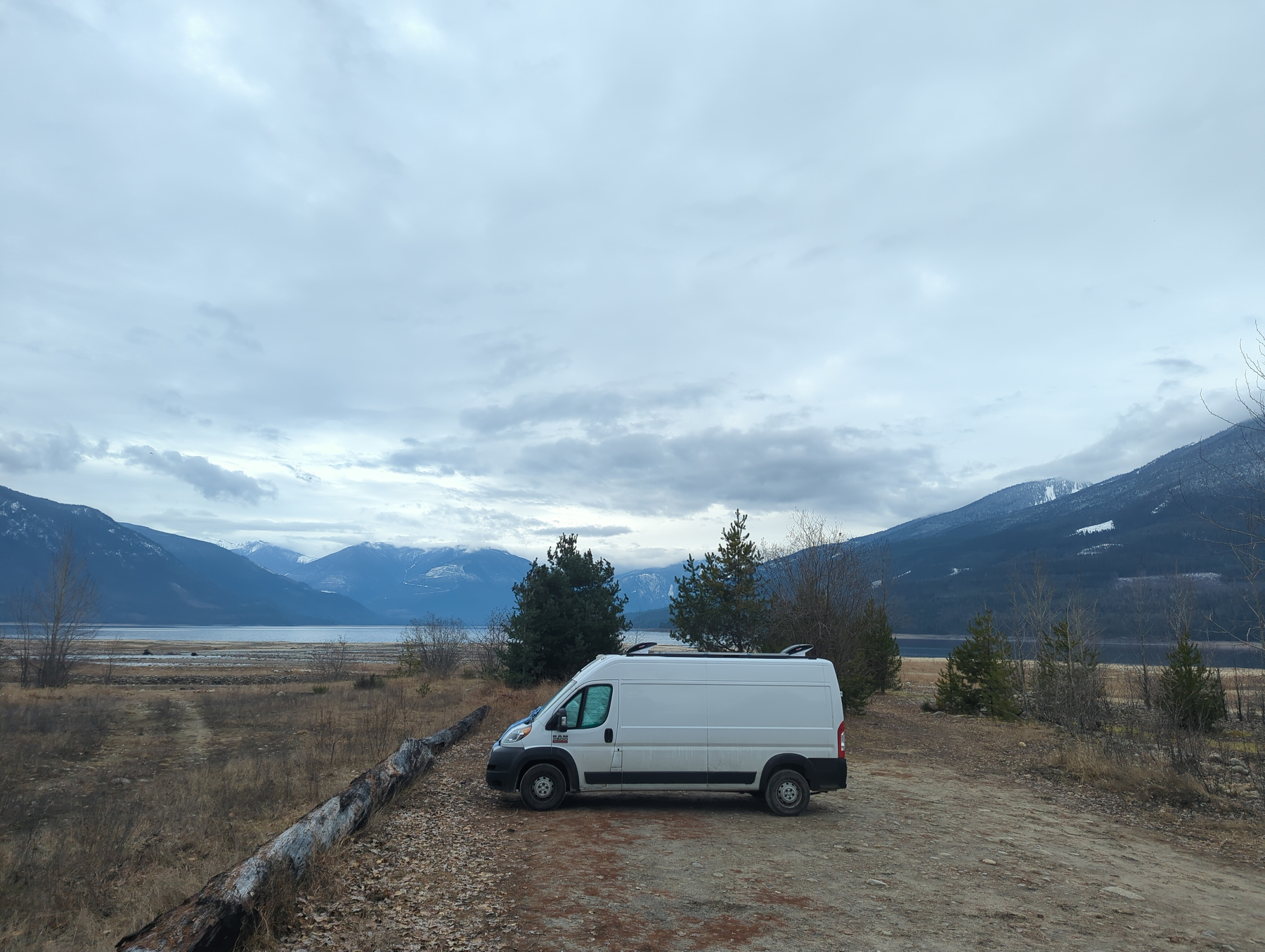 Further north, our attempt at a “hidden gem” natural hot spring turned into a thirty-minute masterclass in reversing a van down a snowy, rutted-out mountain road. After that comical retreat, we pivoted to a developed spring outside the town of Nakusp that Josh and Monika found. The shower and long soak was exactly what the doctor ordered. We ended the day camping on the beach in Nakusp, enjoying a pleasantly warm (at least for Canada) night by the water.