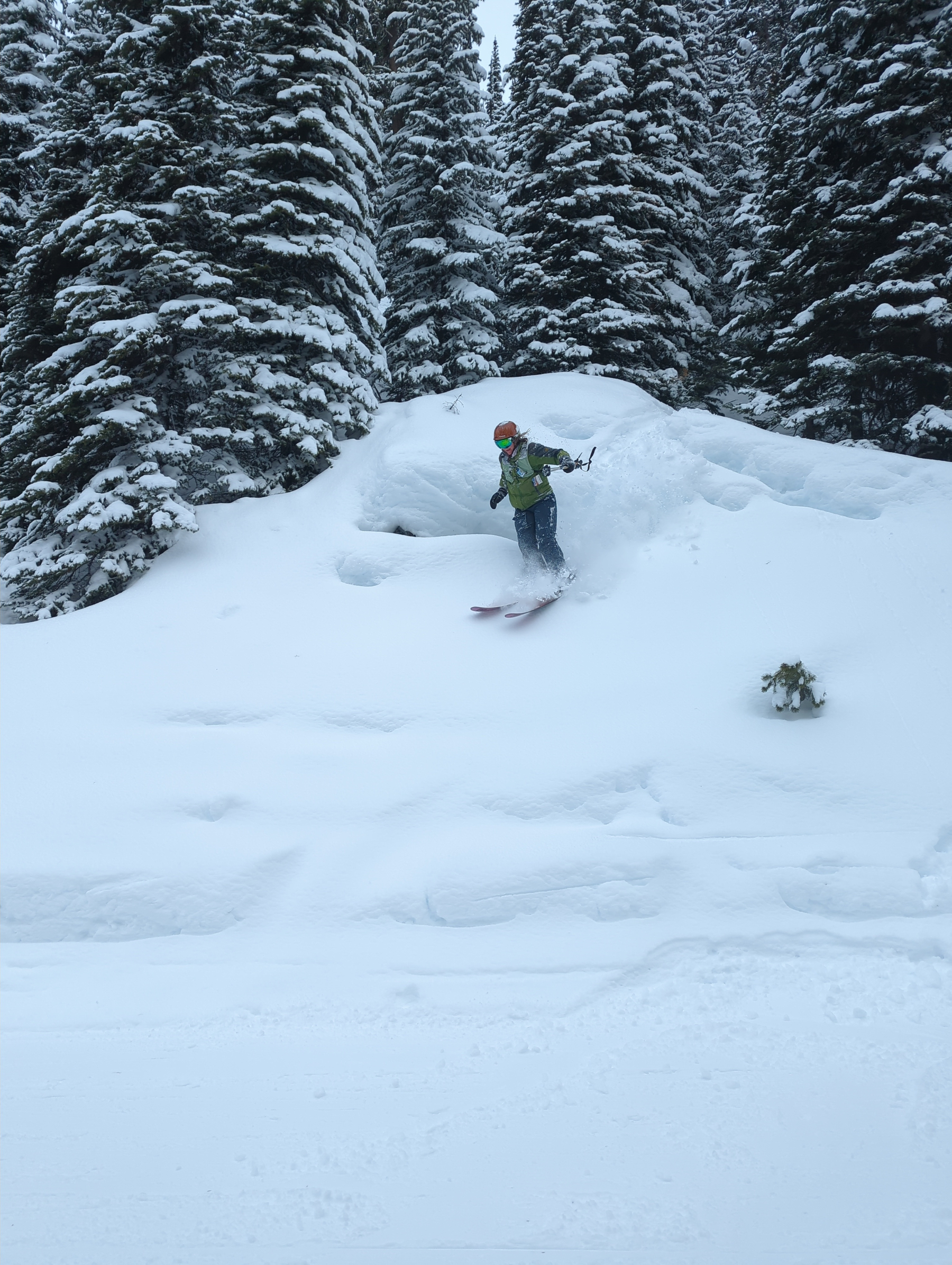 The next morning, we caravanned into town for our first day on the slopes. After Rose and I grabbed our passes and everyone was caffeinated, we took the gondola up to explore Josh and Monika’s favorite run on the mountain, Christmas Tree Bowl. The entry cliffs were rough and icy, but the glades below were a snowy wonderland, impressively long compared to our usual runs at Loveland.