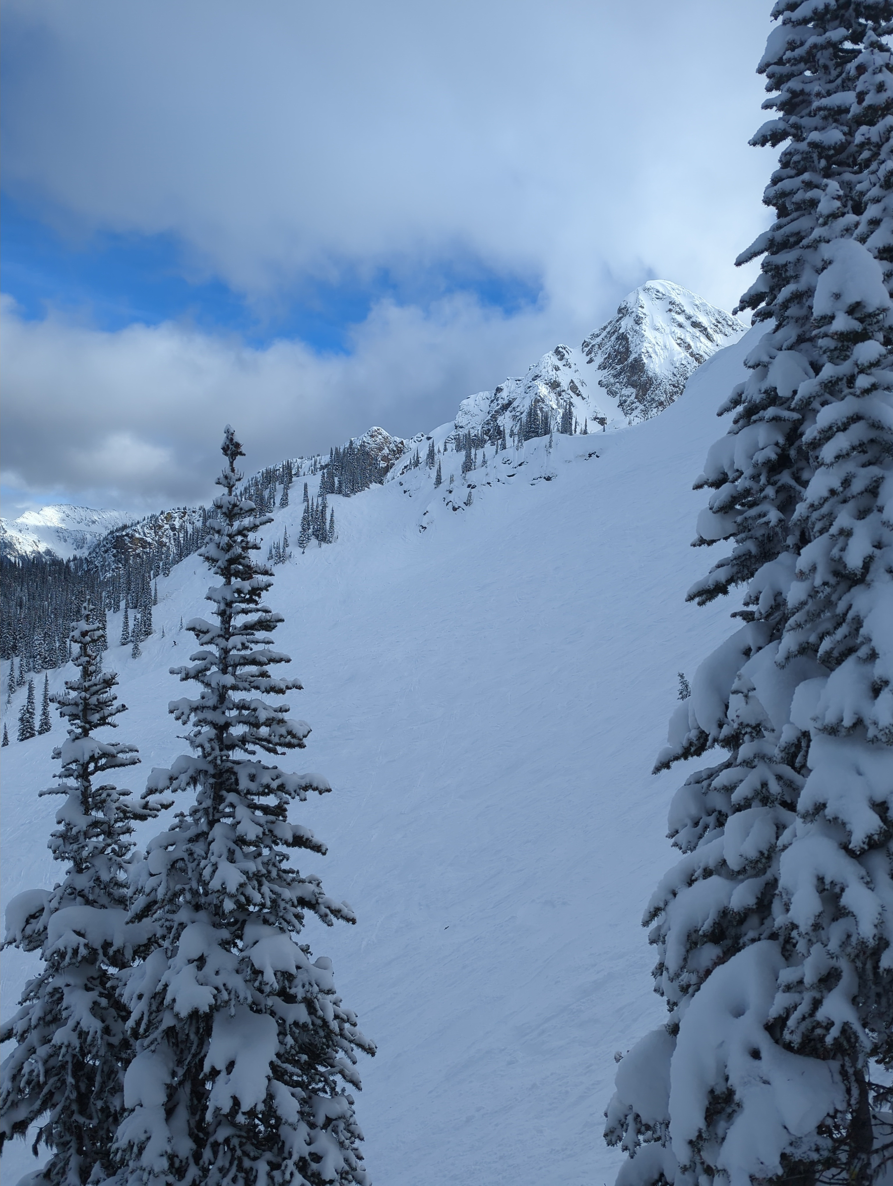 After a chilly morning fueled by lattes in the lodge, we finally hit the jackpot. The conditions were exactly what we’d been hoping for: firm, fast groomers and actual fresh powder in the trees. Yay, Canada!