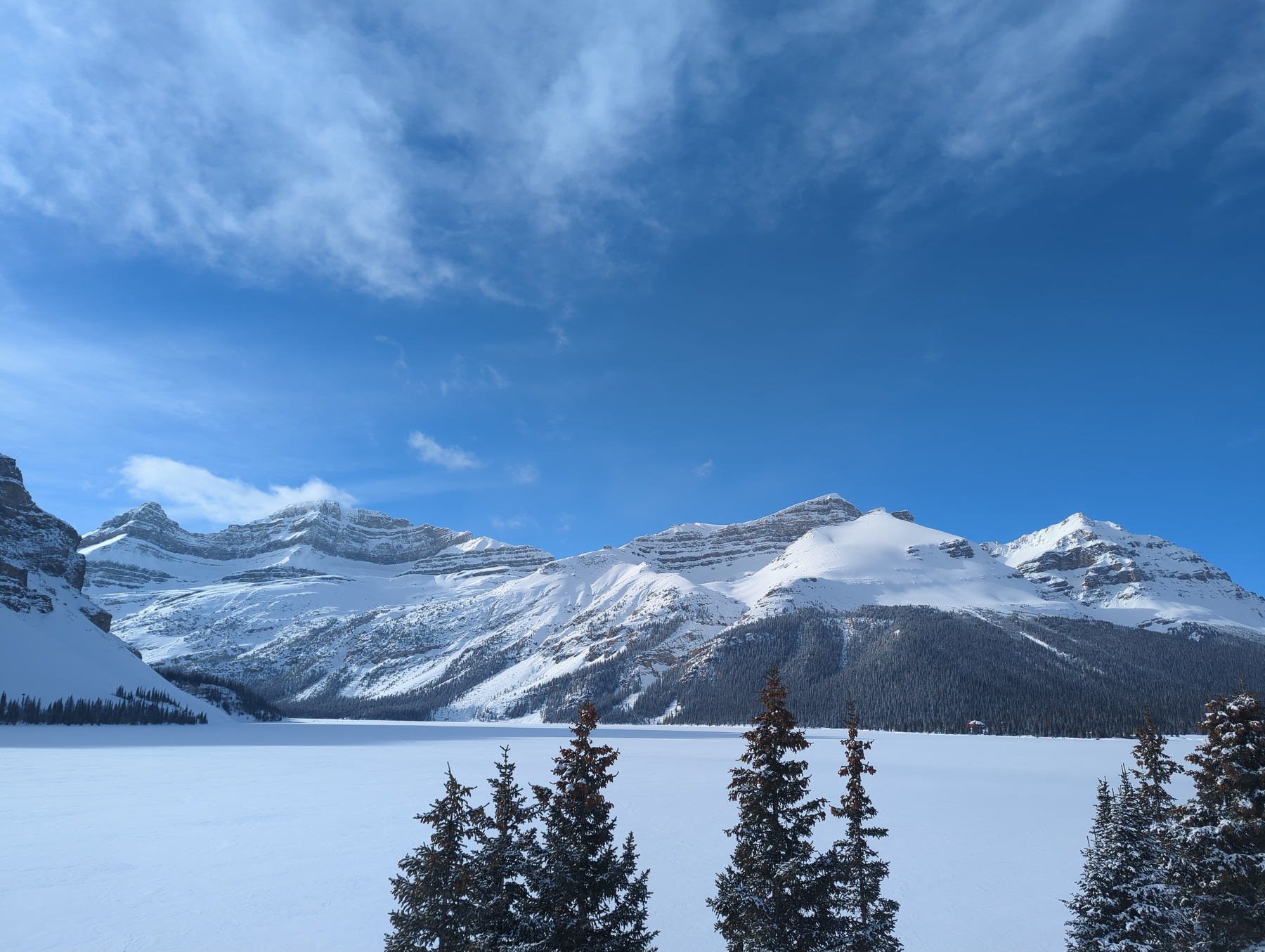 While waiting for Josh and Monika to finish their day, we drove a stretch of the Icefields Parkway, one of the most scenic drives in the country, flanked by massive glacial peaks and frozen lakes.
