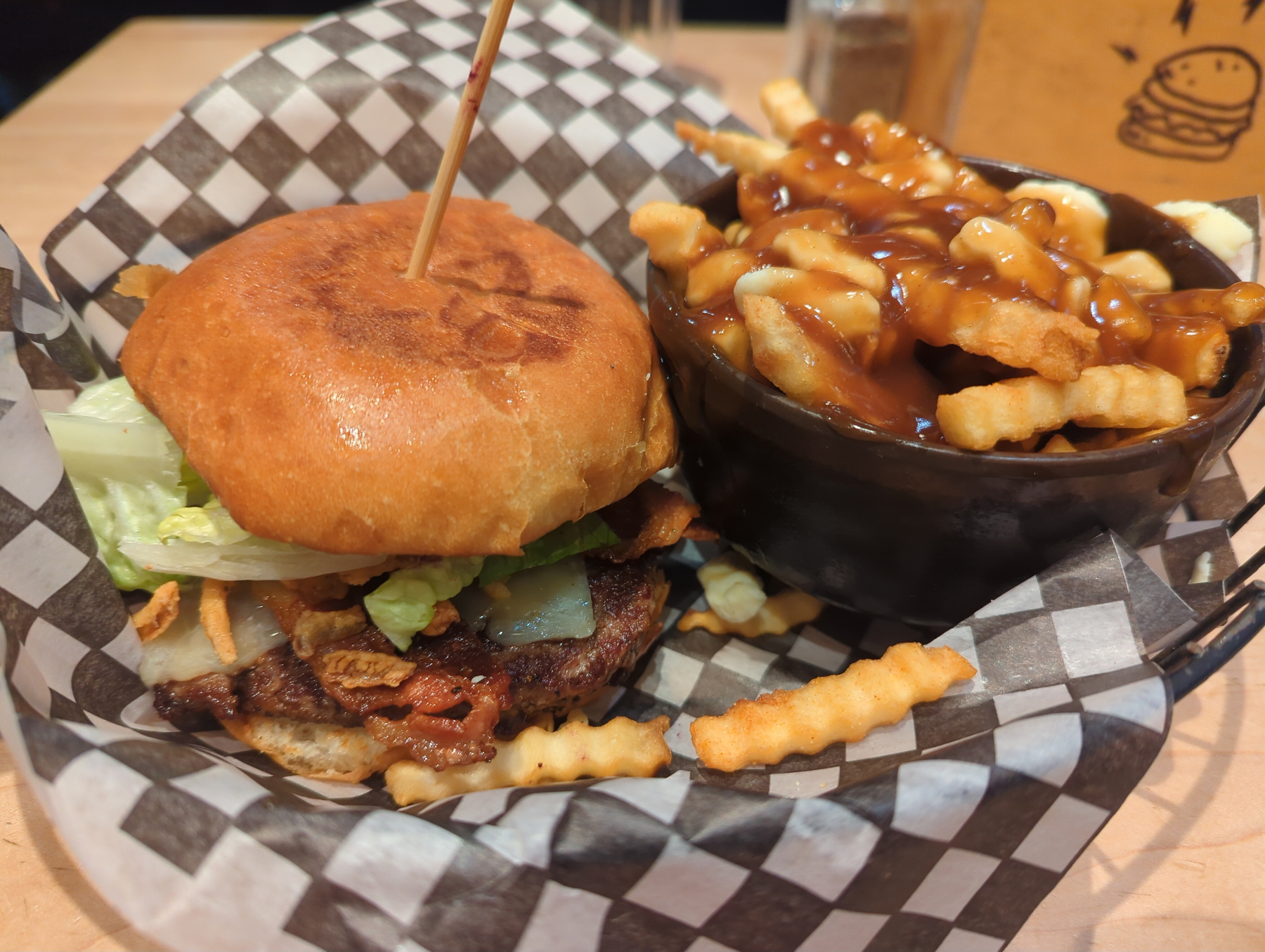 It wasn’t just Valentine’s Day; it was also my and Rose’s anniversary. We celebrated with a double date at a local pub that really screamed “O Canada”: ski decor, flags everywhere, and Olympic hockey on the TV. After a day of burning through our legs on the mountain, we refueled the only way you can in BC: poutine, pizza, and cold beers.
