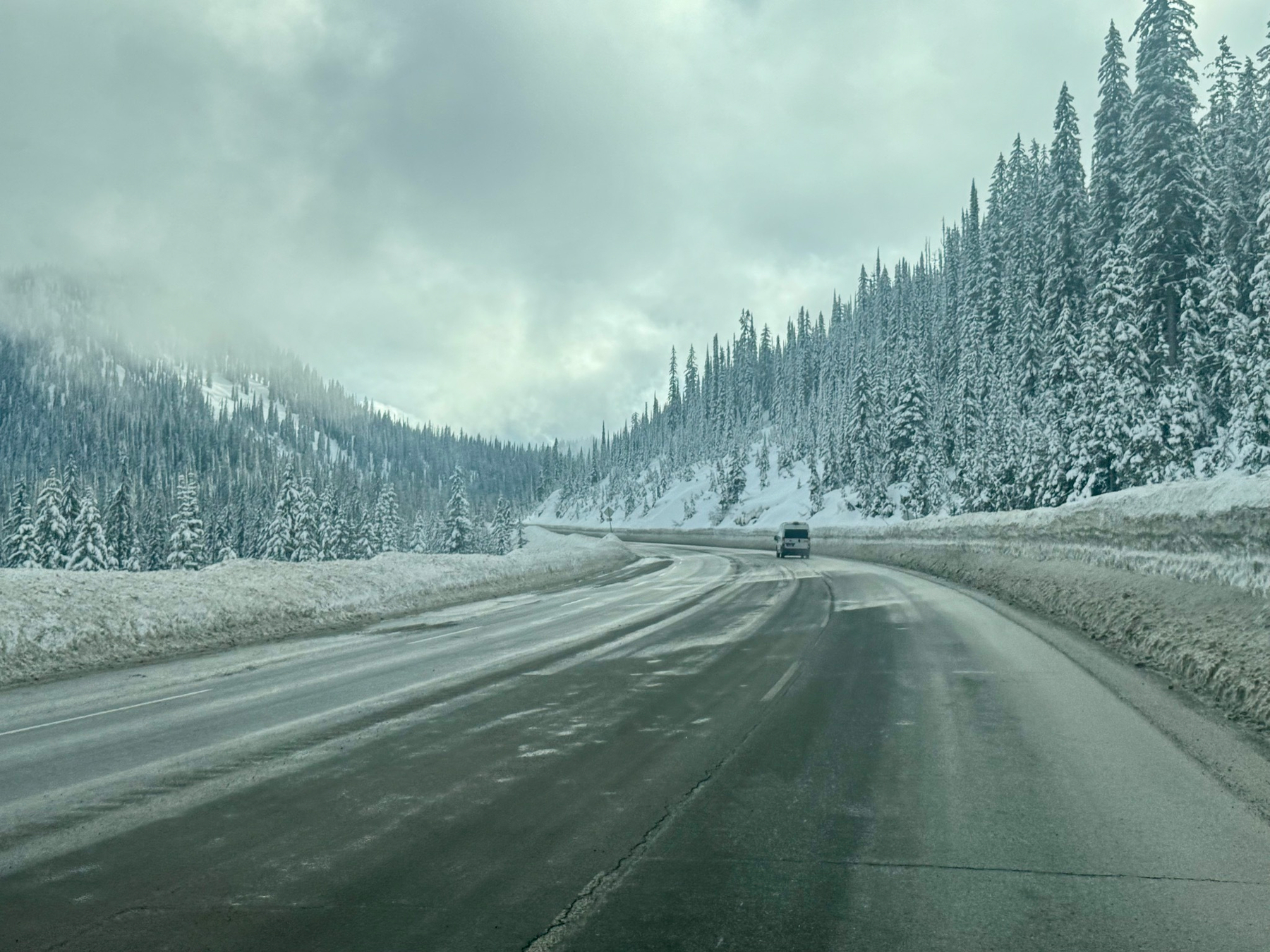 Just after settling into a deep sleep, we got our first real taste of the “disgruntled local” experience. Around 11:00 PM, someone decided to do a few laps around our pullout while leaning on their horn. Apparently it’s a classic experience for van dwellers sleeping off roads in populated areas, but it was a first for us. Once things calmed down, we managed to get a solid night’s sleep, ready to see if the snow in Revelstoke lives up to the promise!