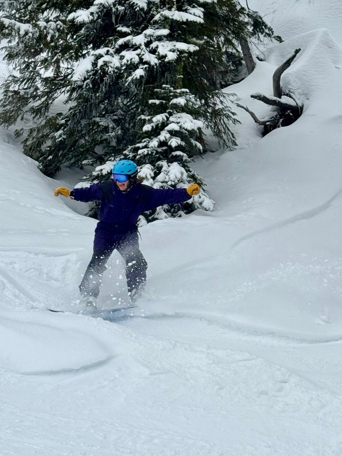 We woke up to the sound of rain—a discouraging echo of our Schweitzer experience. It was also our first Saturday on the slopes, and the crowd at the base was massive. Because of the mountain’s unique layout, everyone has to funnel through a single gondola, making the line look intimidating. However, the rumors were true: what was rain at the base was pure, light powder up top.